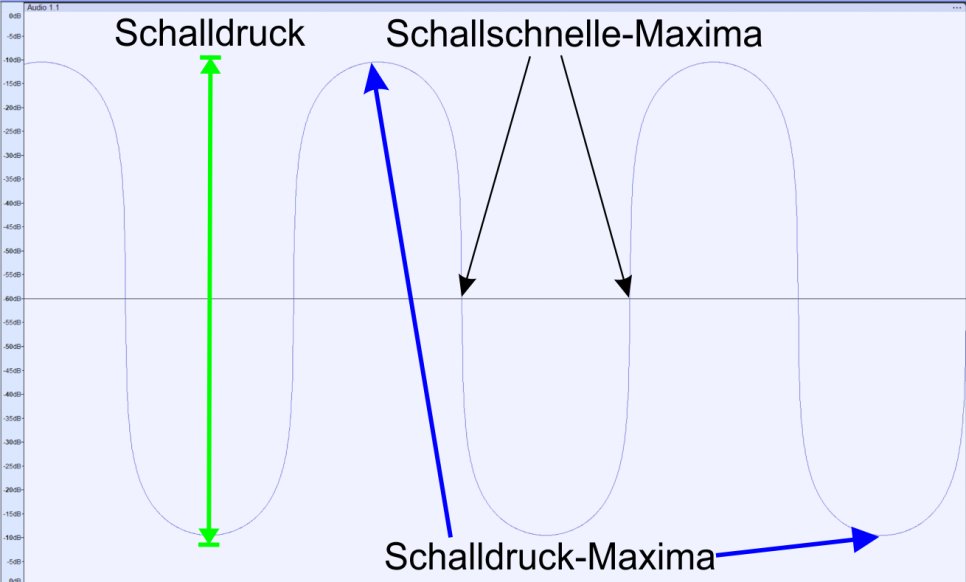 Der Schall durchdringt die poröse Schicht und wird an der schallharten reflektiert. Direkt an der Wand ist der Schalldruck maximal und die Schallschnelle minimal. Um ¼ Periode phasenversetzt zu jedem Schalldruckmaximum befindet sich ein Schallschnellemaximum.